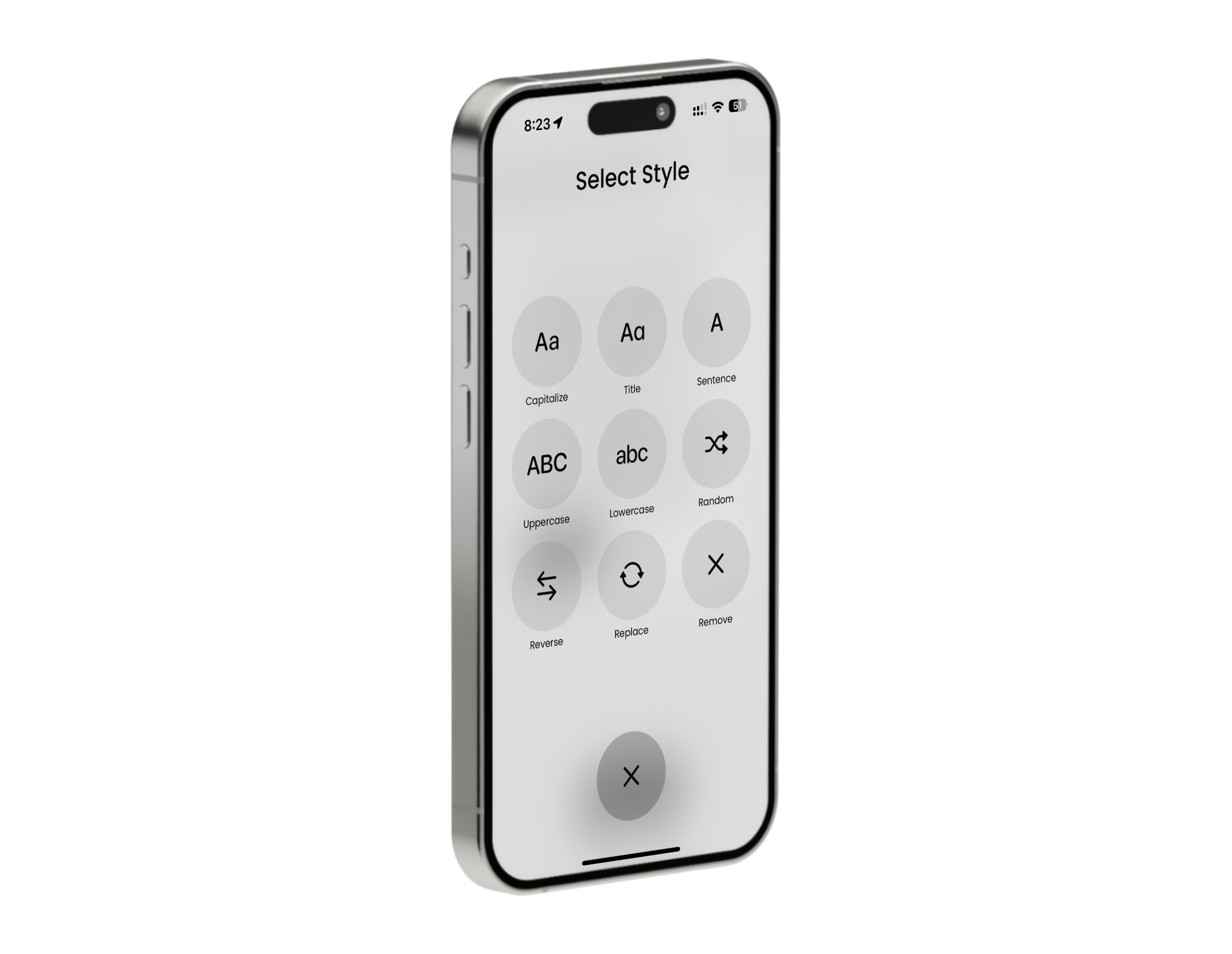 • Easily convert text cases with just two clicks: Capitalize, Title case, Sentence case, Lowercase, Uppercase, Randomize case, and Reverse case